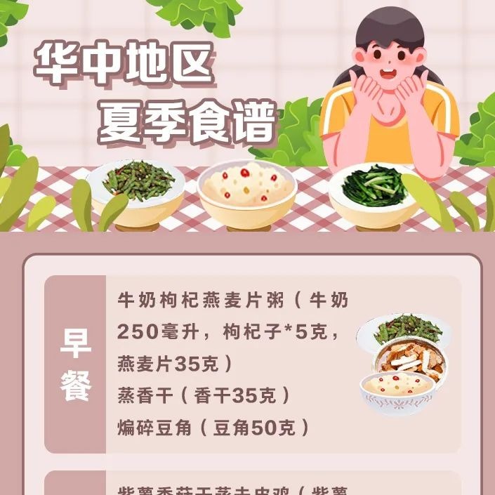 华中地区居民主食以米面为主,蔬菜种类多样,水果丰富,饮食口味偏辣、油盐重。本系列食谱遵循成人肥胖患者食养原则,合理搭配华中地区特色食材,尊重本地区传统饮食文化,保留特色饮食,并控制油、盐、糖使用量。