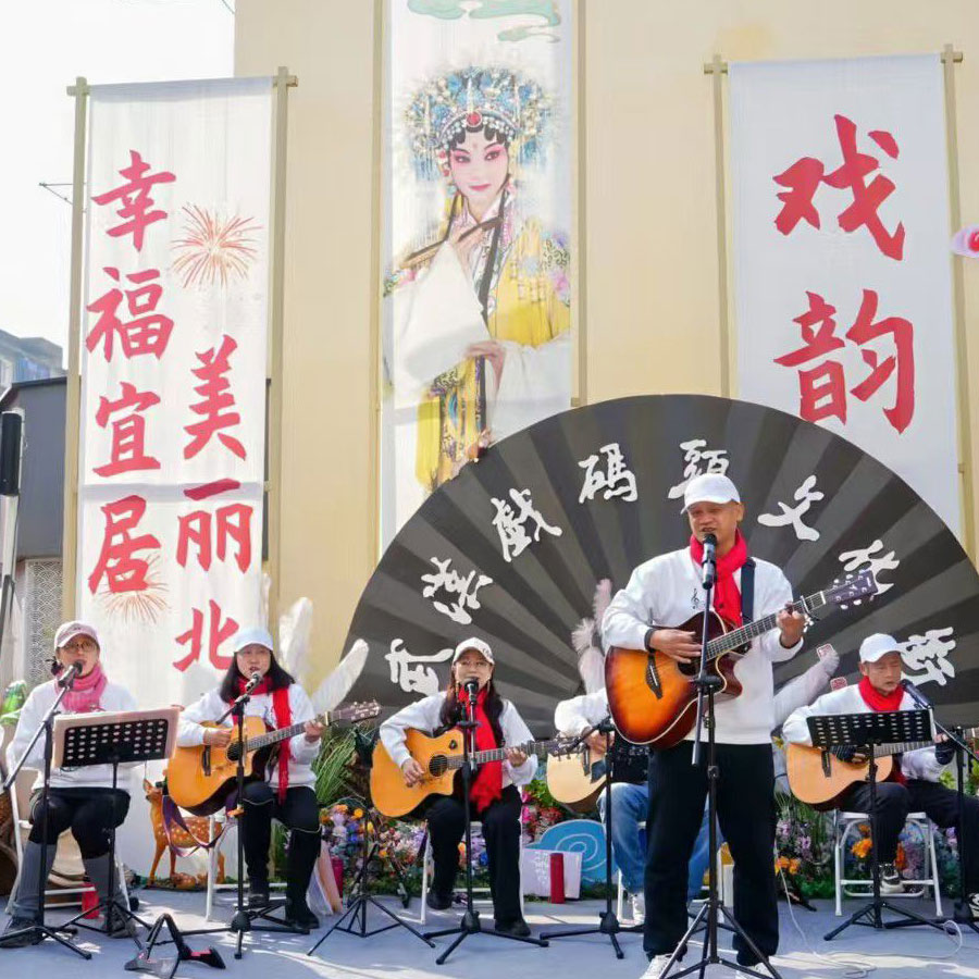 常青花园湖之韵民谣队,初创于2018年,是东西湖民谣圈的“实力派”。乐队最初由几位热爱吉他的队员自发组建。近两年,又吸纳了声乐、舞蹈等专业艺术人才。乐队累计参与各级各类文艺演出、公益活动超100场,用琴声传递快乐,用音乐服务群众。