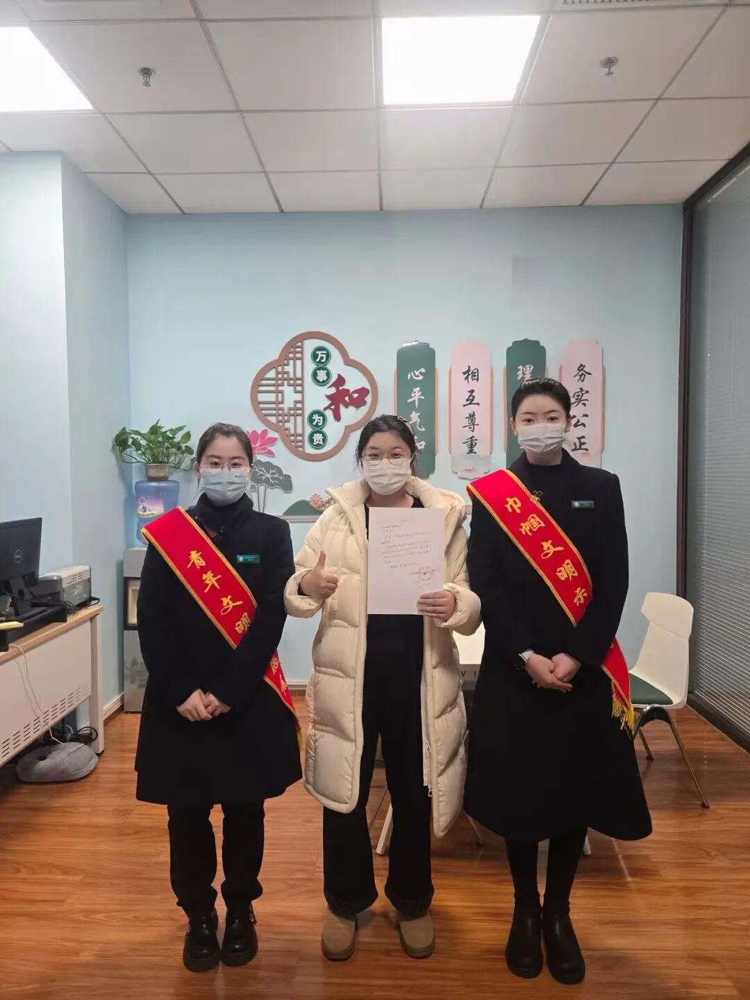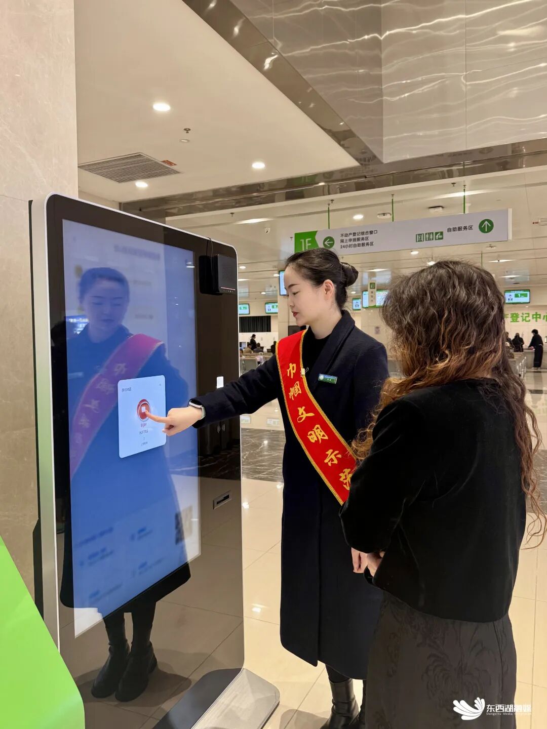 据了解,当天,陆女士独自前来办理公司营业执照变更业务。刚走进大厅,佩戴“巾帼文明示范岗”绶带的导服人员高姗便主动迎上前。注意到陆女士行动不便,高姗没有让她取号排队,而是立即联系三楼帮办专区的同事杜伊妮,启动全程帮办服务。