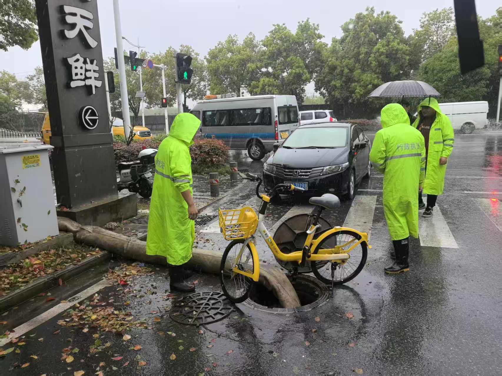 早晨7点,为保障早高峰居民出行畅通,巡查至远洋世界三期的工作人员,不顾雨水浸湿衣物,徒手清理井盖口堆积的树叶、杂物,彻底疏通排水堵点,确保路面排水畅通无阻。经过连夜不间断应急处置与清晨精细化排查清理,早高峰时段,辖区路面无明显渍水点,道路交通秩序井然,辖区生活秩序稳定。