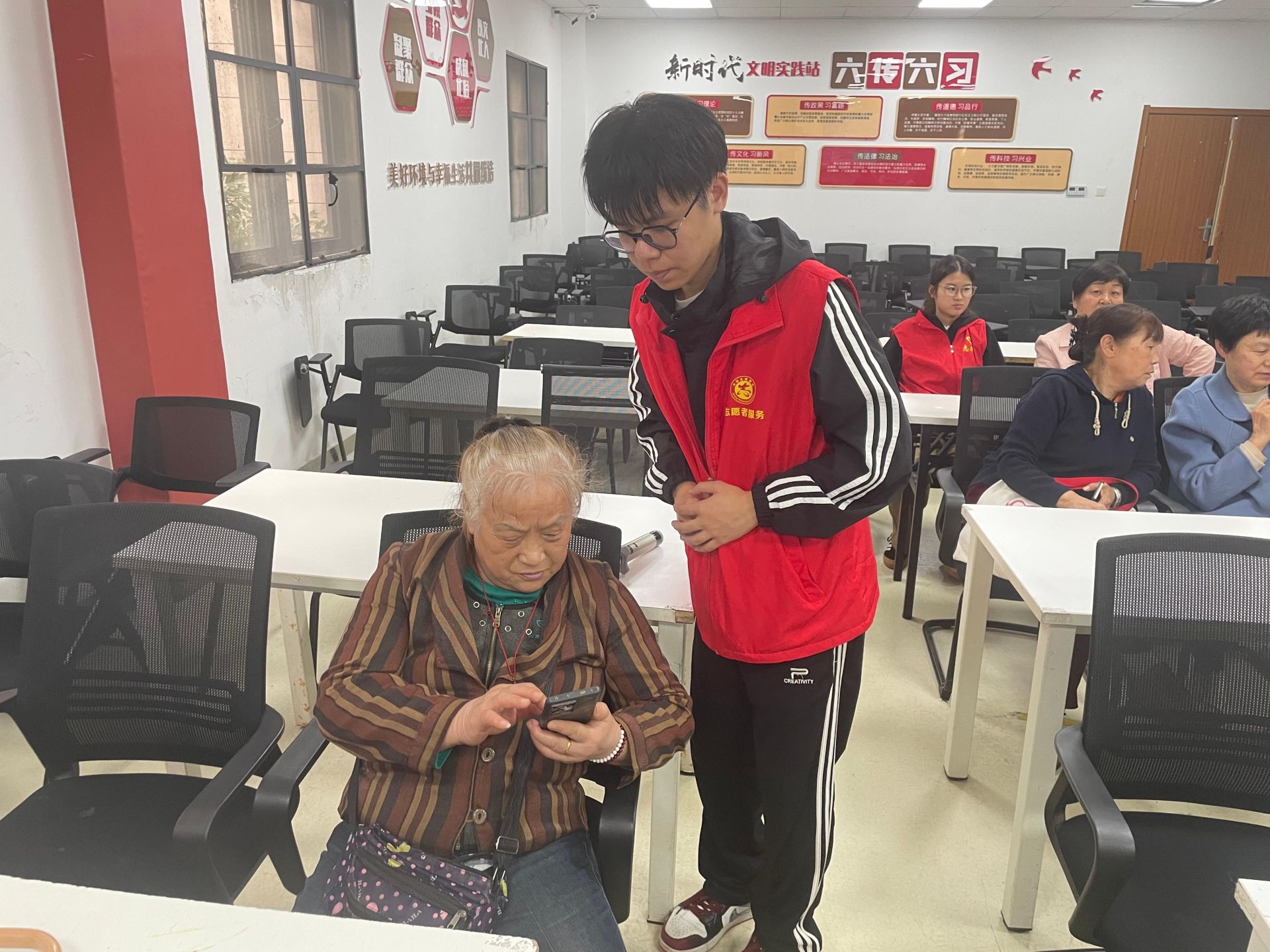 社区在“一马当先,七心协力”党建品牌引领下,依托“暖心助老,孝老协力”子品牌建设,聚焦老年群体急难愁盼,主动链接高校志愿资源,搭建“社区+高校”助老服务平台。此次活动精准对接辖区老人需求,邀请专业素养高、有耐心的青年志愿者,以“集中教学+一对一辅导”的模式,为老人们送上实用的手机操作教学。