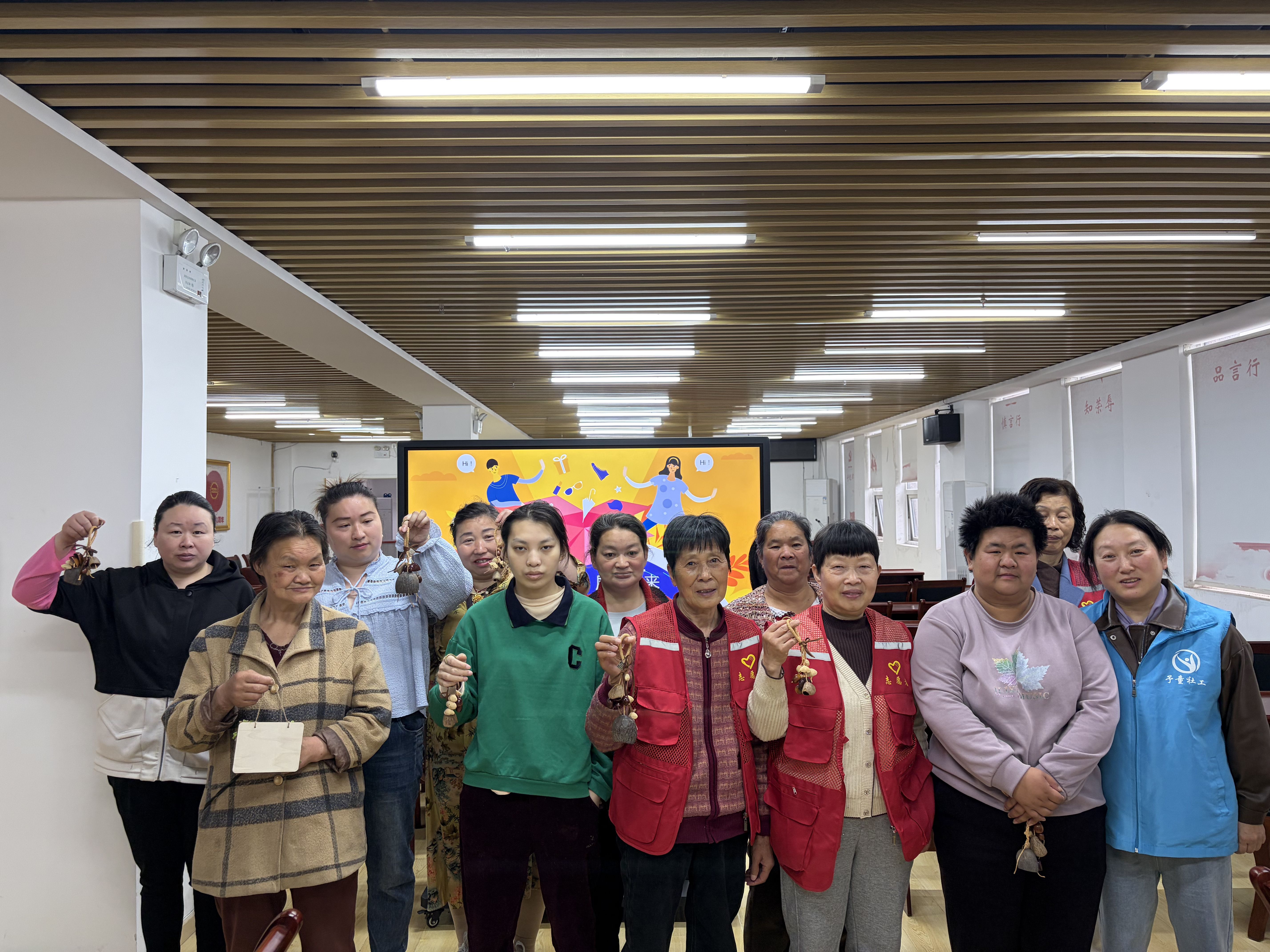 在果壳风铃制作环节,十字路社区“十心实益”志愿服务队的队员们手把手教大家穿孔、穿线。曾被丢弃的果壳,恰似生活中曾被忽略的个体——经过耐心打磨、彼此串联,终能发出清亮回响。一位患者举着风铃笑说:“我要挂在床头,听见它就想起今天。”