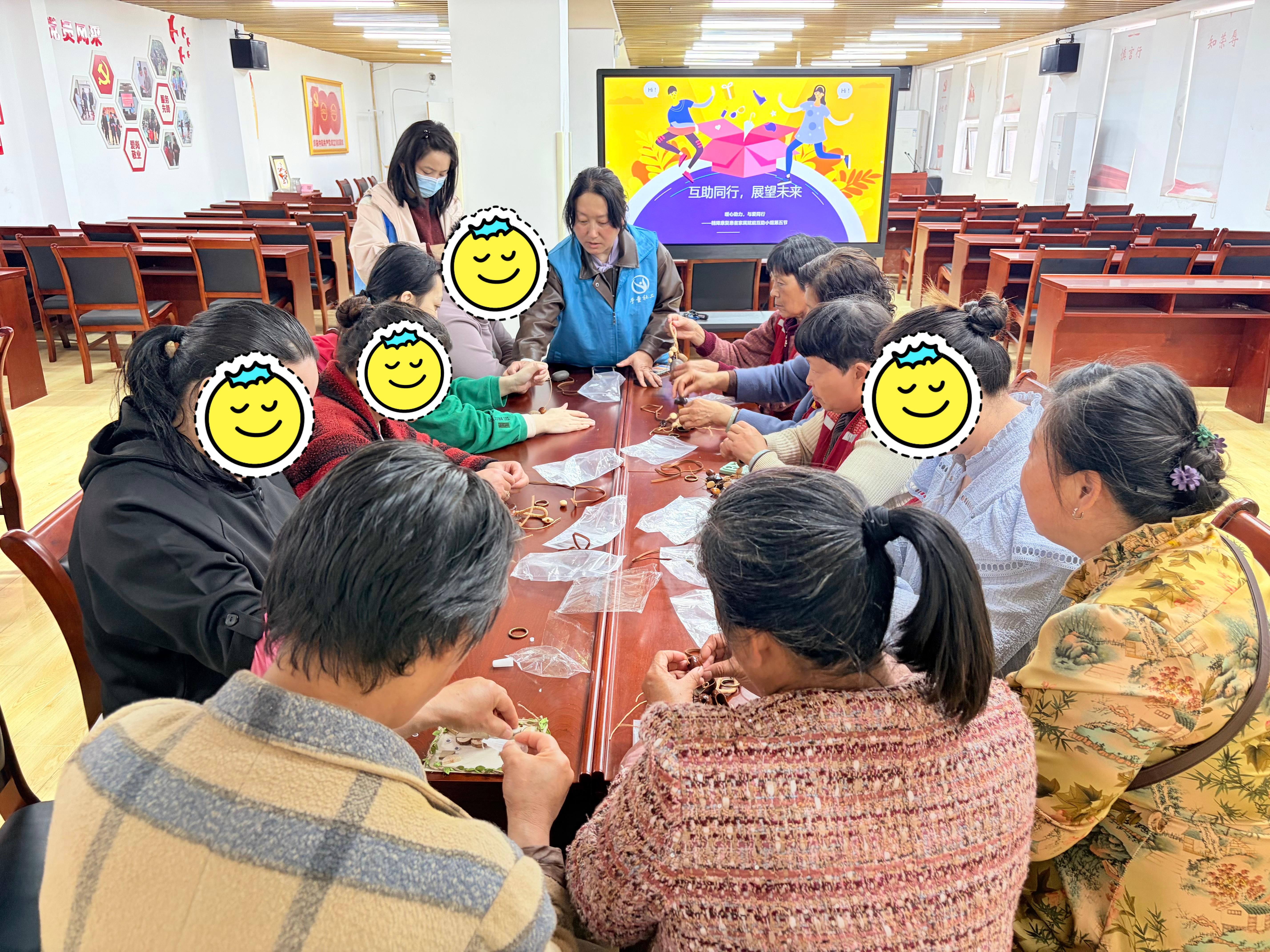 一张长桌,几串风铃,满室温情。4月15日上午,径河街十字路社区活动室内,笑声与讨论声此起彼伏。精康患者、家属、志愿者和社工,在手工制作与联谊中用分享收获、化解困惑。