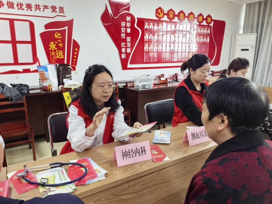 义诊环节,志愿者们耐心细致地为前来咨询的居民开展免费血压、血糖检测,逐一记录检测数据,并一对一解答居民关于帕金森病、脑卒中、高血压、糖尿病等慢病防治的疑问。志愿者们还发放健康宣教手册,结合居民身体状况给出个性化饮食、运动及日常护理建议,帮助群众实时掌握自身健康状况,筑牢慢病防控第一道防线。