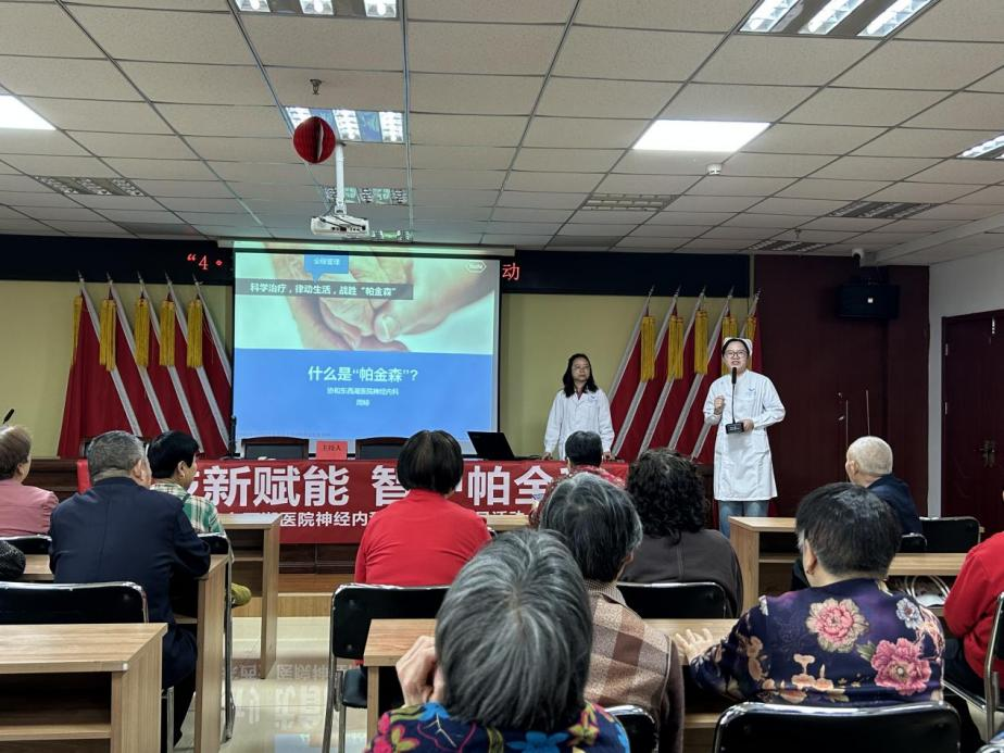活动现场,神经内科周婷副主任围绕帕金森病日主题,针对帕金森病的病因、早期信号、诊疗误区、日常护理及长期管理展开科普讲解。她用通俗易懂的语言向居民强调,帕金森病并非“正常衰老”,肢体震颤、肌肉僵硬、行动迟缓等都是需要警惕的早期信号,呼吁大家做到早发现、早诊断、早干预。同时,结合慢病管理理念,周婷副主任还详细讲解了帕金森病患者的长期居家护理要点、用药规范及康复训练方法,帮助患者及家属缓解焦虑情绪,树立科学治病、长期管理的健康理念。
