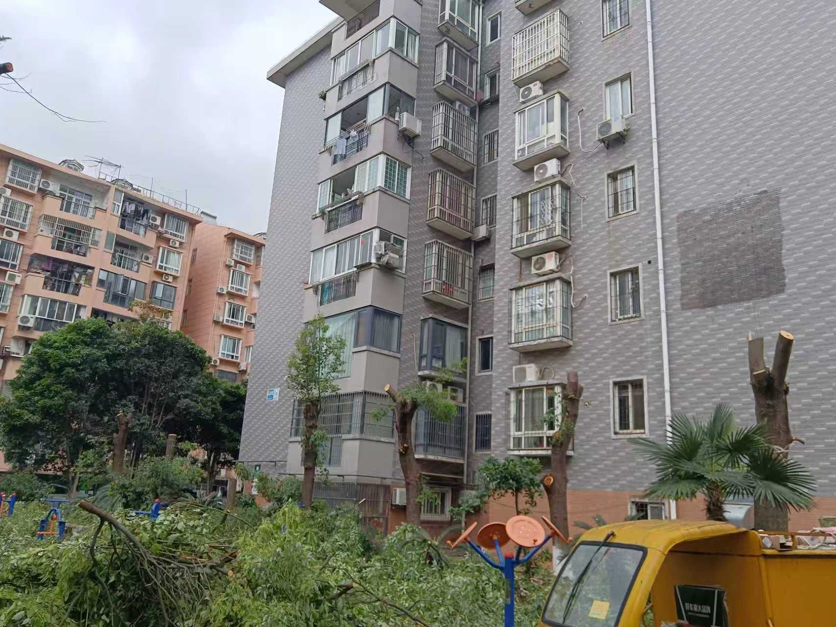 “樟树枝丫脆,容易断。前两天冰雹暴雨,又刮断了好几处树枝,幸好没砸到人和车!”嘉禾园物业相关负责人介绍说。记者现场了解到,今年年初的一场大雪,小区内多处树枝被压断,当时还砸坏了路边停靠的三四辆车,业主反映很大。该小区是建成20多年的老小区,常住居民2100多户,种有860多棵樟树。由于多年没有进行大型修剪,树木长得枝繁叶茂,有的高达十五六米,树枝直接贴到六楼居民的窗户,低层住户采光被挡得严实,很多居民早就盼着修剪。