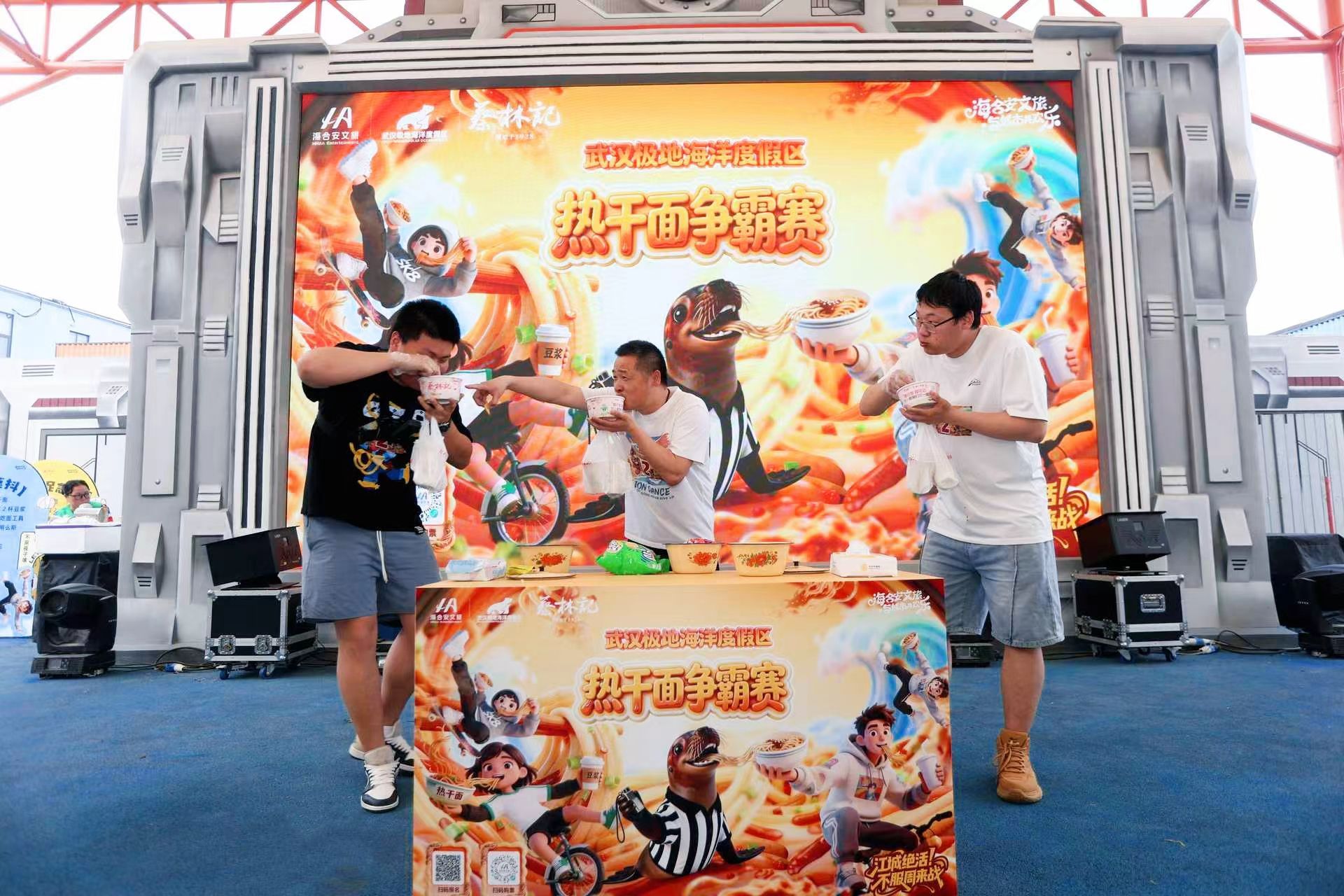 “以往大家提到蔡林记就是‘过早’,提到武汉极地就是‘看海洋动物’,其实这两个都是武汉人生活里的重要记忆点,凑在一起就能碰撞出新的火花。”主办方相关负责人介绍,这次的“热干面争霸赛”本身就是一次“城市IP双向奔赴”的尝试,“我们不想做千篇一律的美食节,而是想让大家在玩的过程里,感受到武汉这座城市的烟火气和趣味性。”