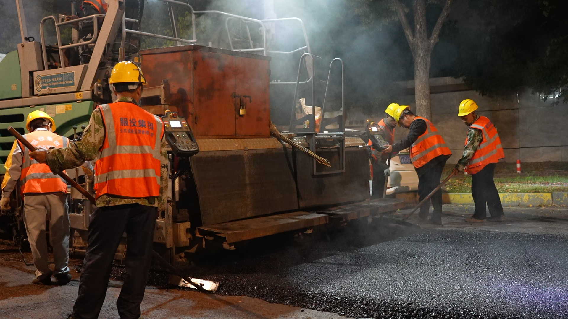 当晚10点,16名施工人员迅速进场,分成4个班组同步作业。大型铣刨机将破损路面逐层清除,压路机紧随其后反复碾压新铺的沥青。考虑到这条路长期有重型货车通行,施工方采用了“双层沥青”结构:下层铺8厘米厚的粗粒式沥青混凝土,提供稳固的承重基础;上层再覆盖4厘米细粒式沥青混凝土,既能降低行车噪声,又耐重压、抗车辙。区服投公司项目经理冷程才介绍说:“这种结构上下咬合紧实,路修好后,至少五年内不用大修!”