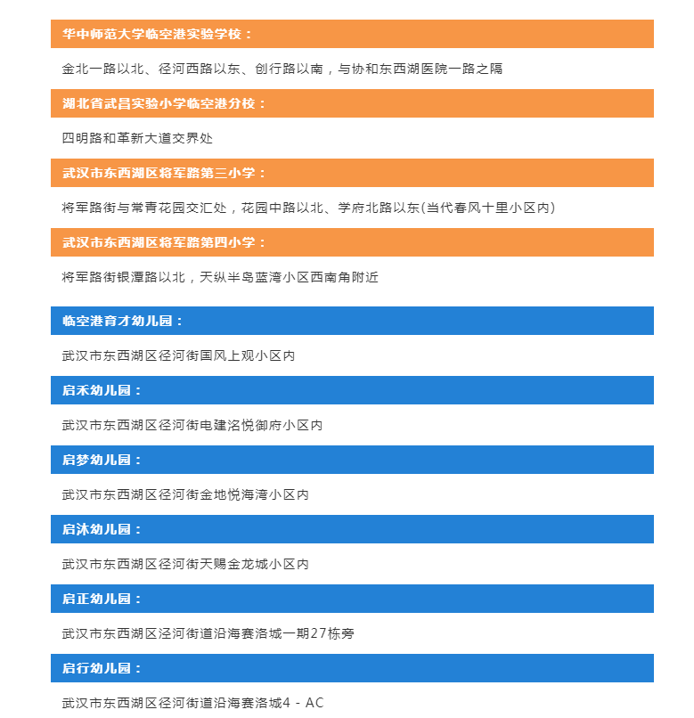 位于金北一路以北、径河西路以东、创行路以南的华中师范大学临空港实验学校,是一所九年一贯制学校,由东西湖区与华中师范大学合作办学。