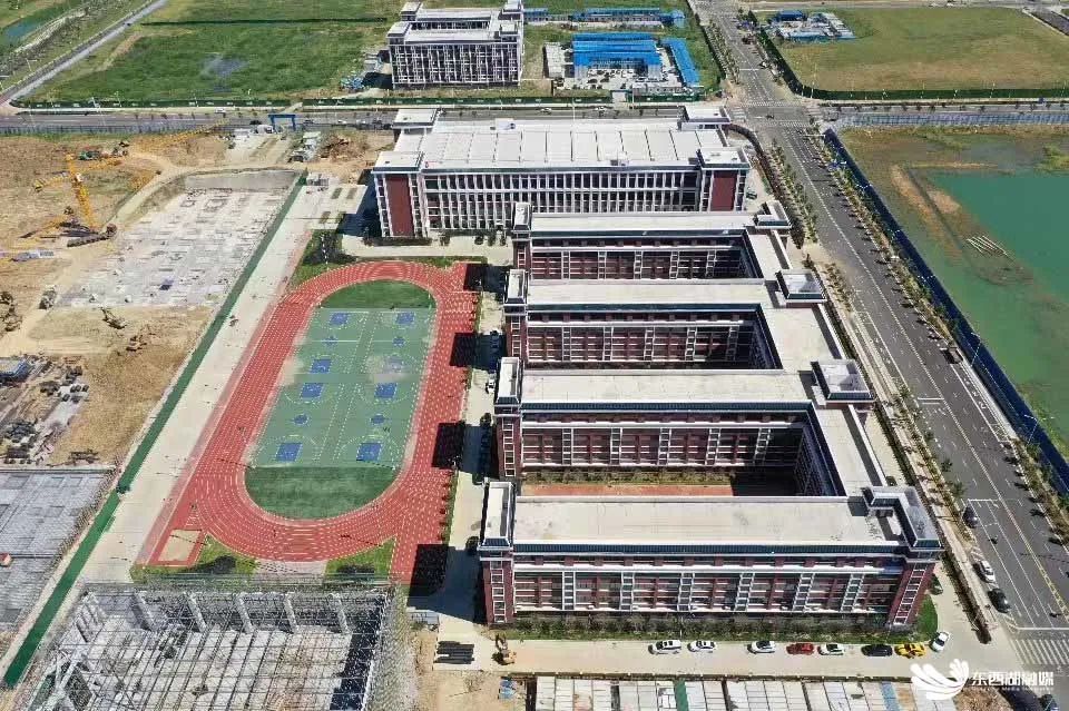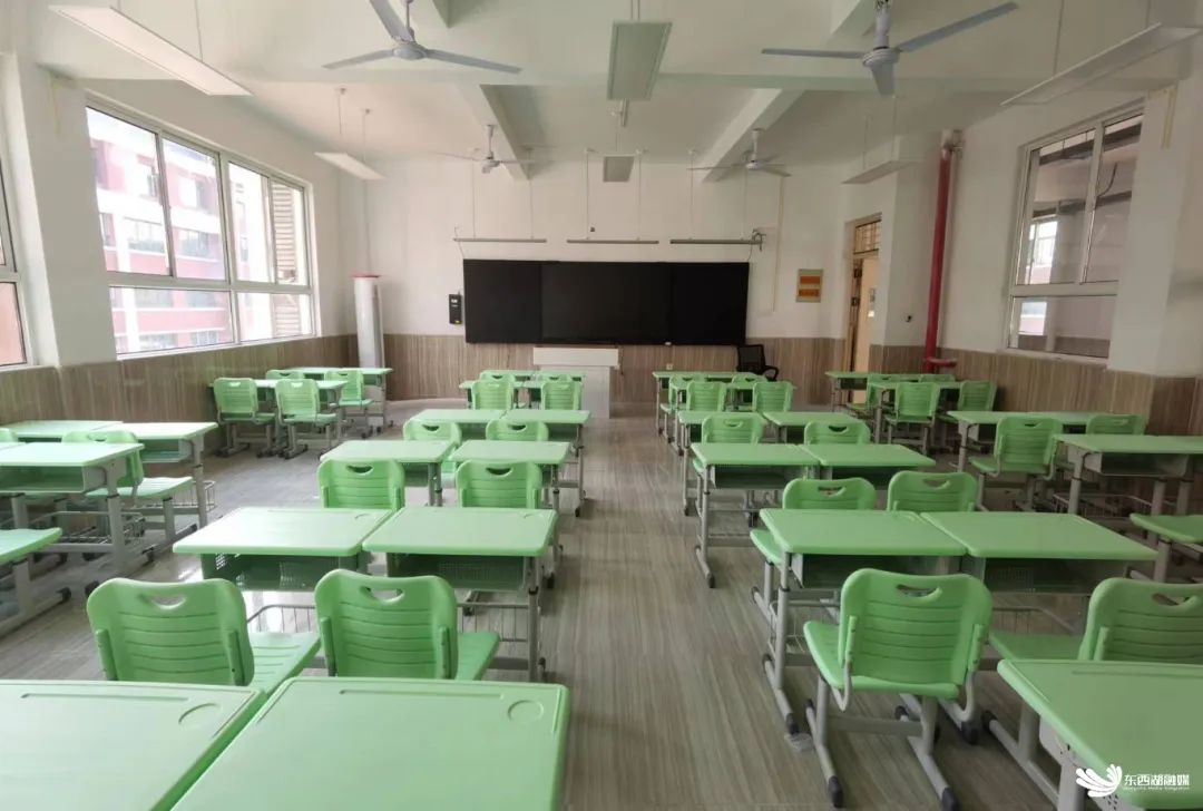 走进校园,一溜儿砖红色外墙的综合教学楼,在蓝天映衬下醒目又气派。教学楼内,教室宽敞明亮,桌椅摆放整齐,智能黑板、中控讲台等教学设备均已安装完成。