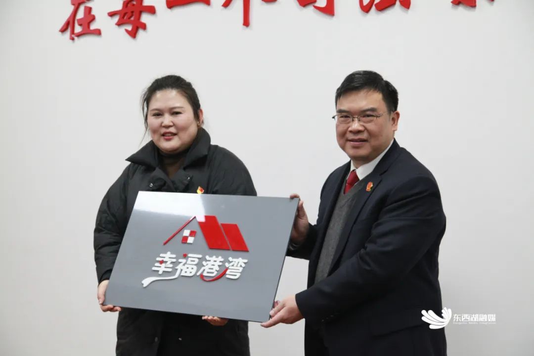 签约活动上,东西湖第一家“幸福港湾驿站”授牌落地金银湖街金口社区。