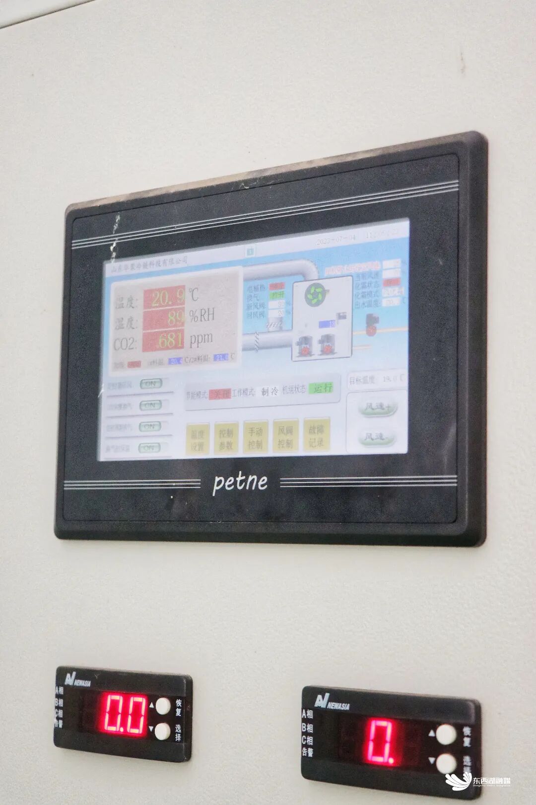 棚内还配有整套数字化种植系统,包括多组传感器、雾化装置等,可记录并控制种植区域范围内的温度、湿度、光照强度以及二氧化碳浓度等环境参数,实现24小时自动精准环境调控。