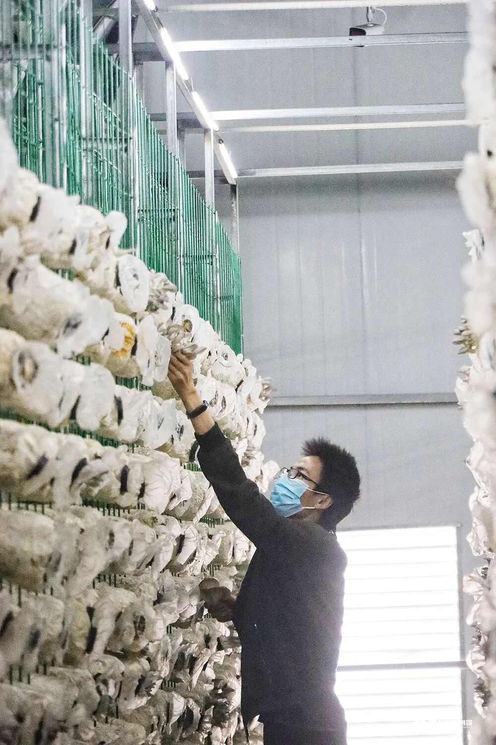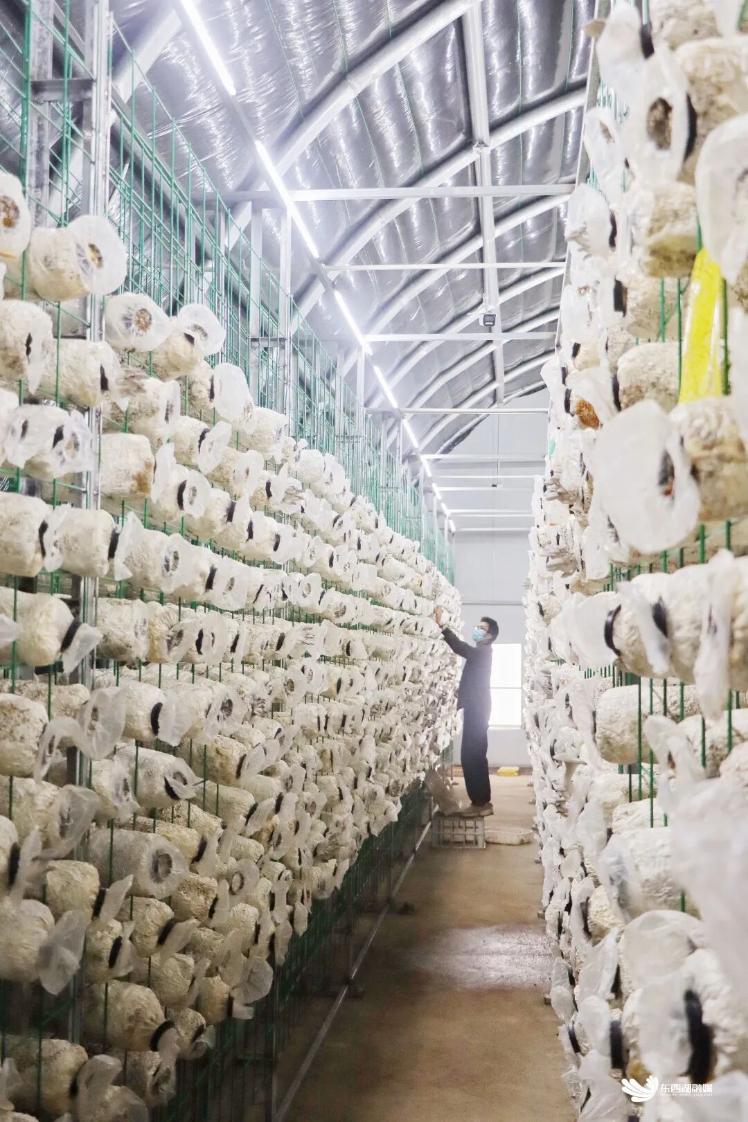 此外,每个空调大棚棚顶都安装了3层保温隔膜材料,用以控温,在棚顶下则安装有风管管道,通过空气循环,保障食用菌的用氧需求。
