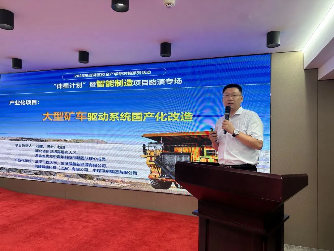 由武汉工程大学电气信息学院教授刘健演示的“大型矿车驱动系统国产化改造”项目,立足自主创新,致力于进口大型矿车驱动系统改造与规模化应用。目前,项目已完成样车试产,正筹划成立研发中心。刘健表示,项目量产将优先考虑在东西湖区落地。