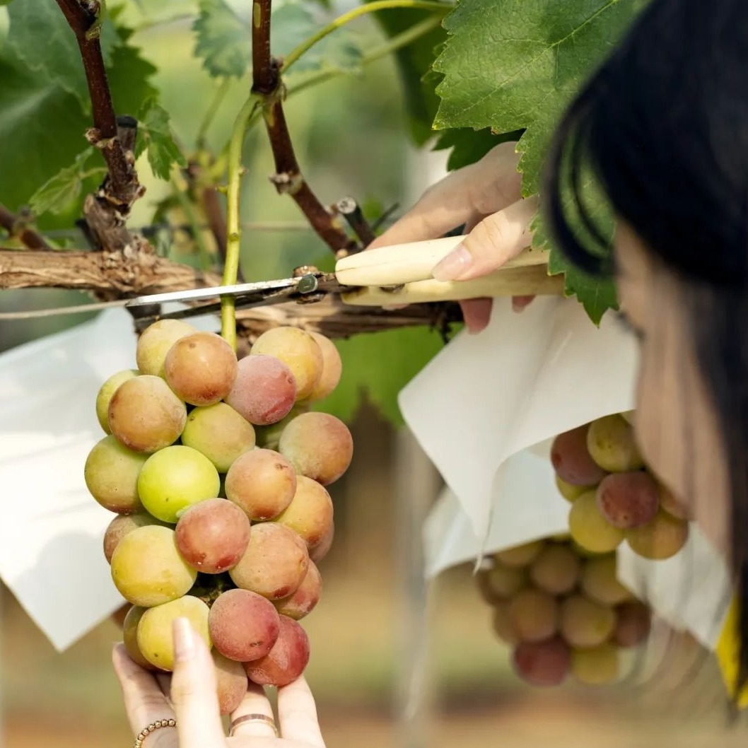 葡萄园里更是热闹,阳光玫瑰、妮娜皇后、澳洲金手指、夏黑……一串串葡萄,绿的像绿色玛瑙,红的像红宝石,紫的像紫水晶,黑的像黑珍珠,璀璨琳琅。