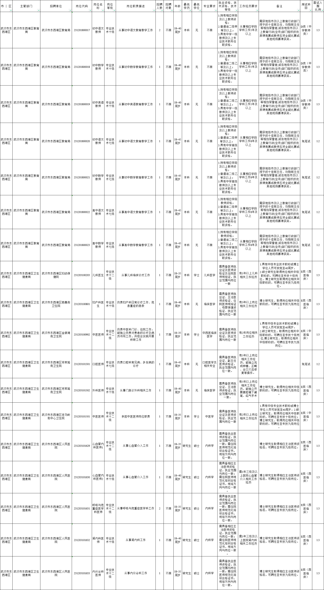 招聘单位、招聘人数及岗位条件等详见《武汉市2023年度部分事业单位公开招聘岗位一览表》,有关报考政策等详见《武汉市2023年度部分事业单位公开招聘报考指南》,应聘人员可于2023年7月25日至8月1日通过武汉市人事考试院官网查询。