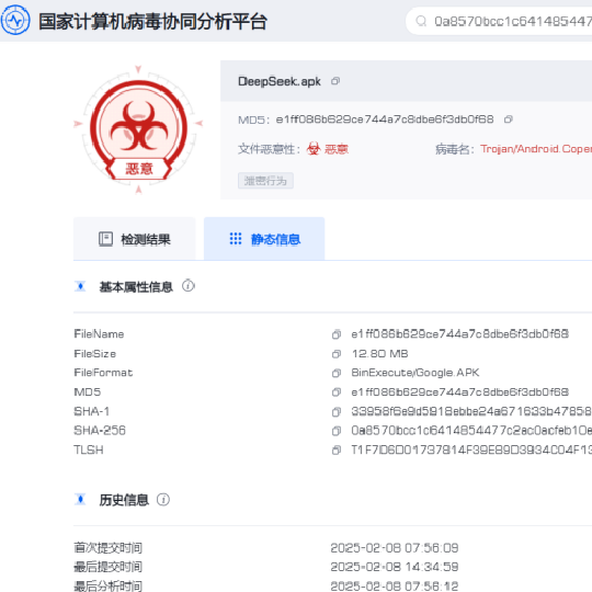 - 仿冒DeepSeek的手机木马病毒被捕获!重要提醒